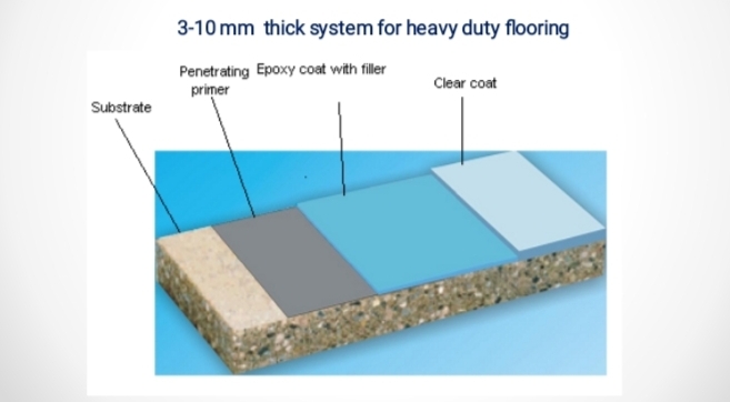 Medium duty flooring is generally use for chemical resistance to harsh chemicals, foot traffic resistance , rubberized wheel movement resistance.
